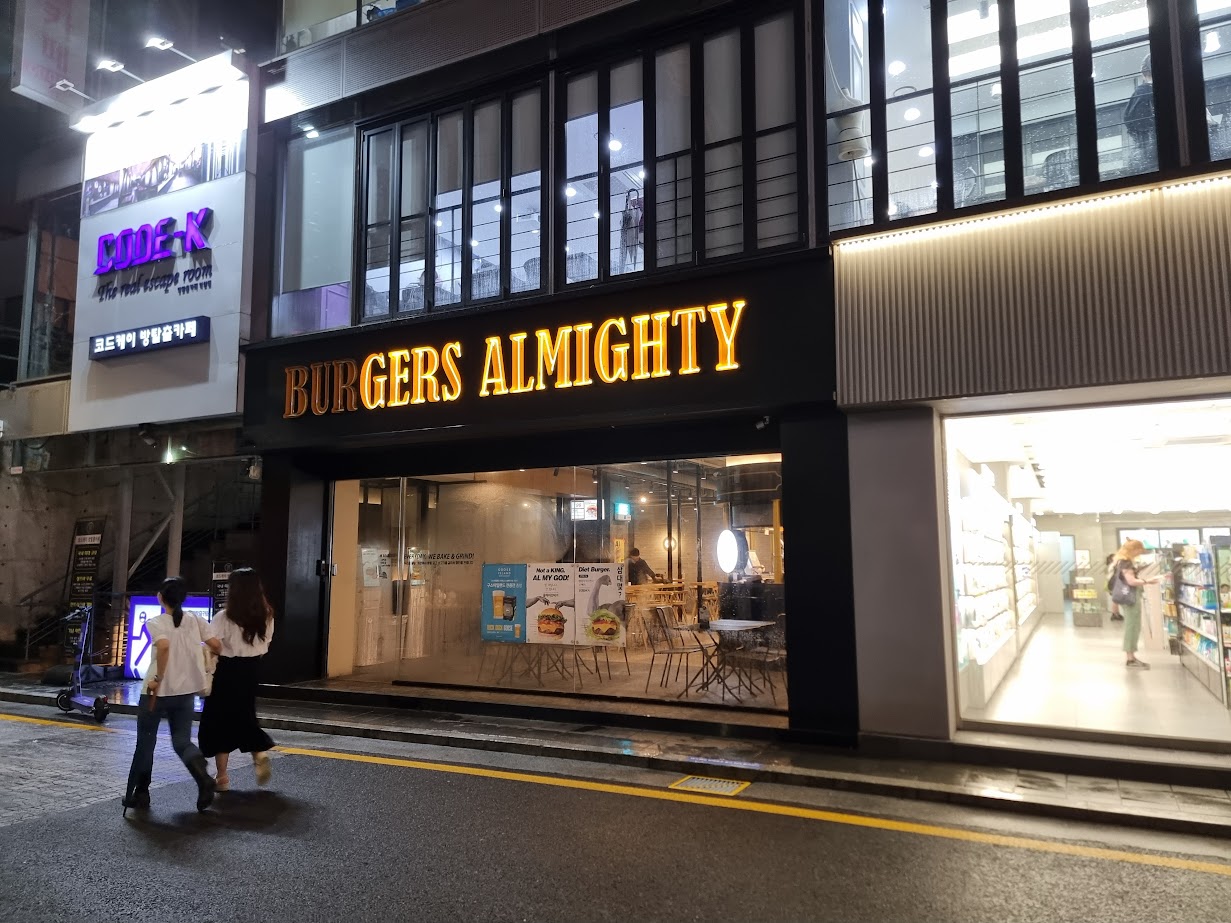 강남 CGV 영화를 예매해 놓고, 저녁 시간이 애매하게 남아 가까운 버거집을 찾다가 후기가 좋은 버거스 올마이티 강남점을 찾았습니다. CGV에서 멀지 않은 거리가 간단하게 저녁을 해결하고 오기 괜찮을 것 같았어요