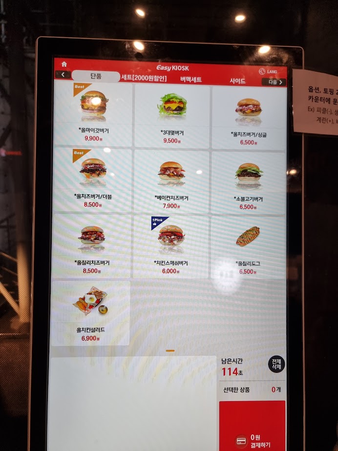 입구에 키오스크가 있어 키오스크를 통해 주문할 수 있습니다