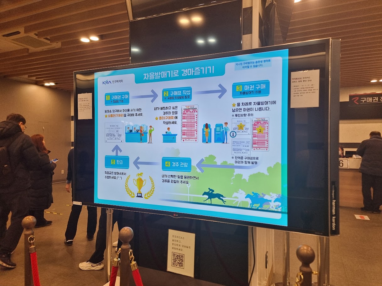 마권 구매(배팅)는 종이를 작성해서 수동으로도 구매 가능하고, 앱으로 구매도 가능합니다(2024년 3월 방문 시 안드로이드만 가능했습니다). 저는 첫 게임만 수기로 구매하고, 이후부터는 앱으로 구매했습니다.