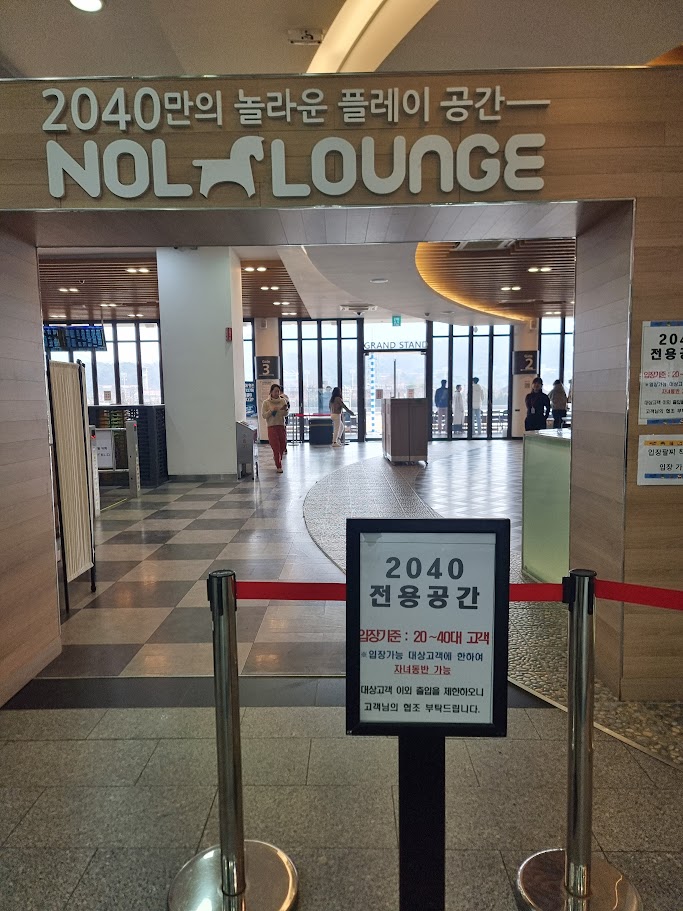 렛츠런파크에는 20~40 고객을 위한 존이 따로 있습니다. 젊은 사람들만 있고, 조금 더 여유로워 쾌적한 관람이 가능합니다. 저는 처음에는 이곳에 있다가, 북적북적이는 사람들 사이에서 긴장감과 생동감, 경기결과 후에 터져 나오는 환호 등을 느끼기 위해 일반 존으로 이동했습니다.