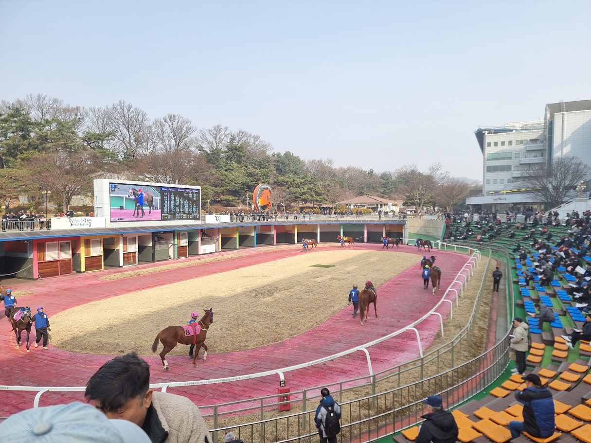 경기는 서울 경기와 부산경남 경기가 번갈아가면서 한 번씩 펼쳐집니다. 서울 경기는 눈앞에서 말이 뛰는 걸 볼 수 있고, 부산경남에서 펼쳐지는 경기는 화면을 보며 배팅을 합니다. 약 30분마다 한번씩 경기가 진행되는 것 같고, 그때마다 배팅을 진행하게 됩니다.