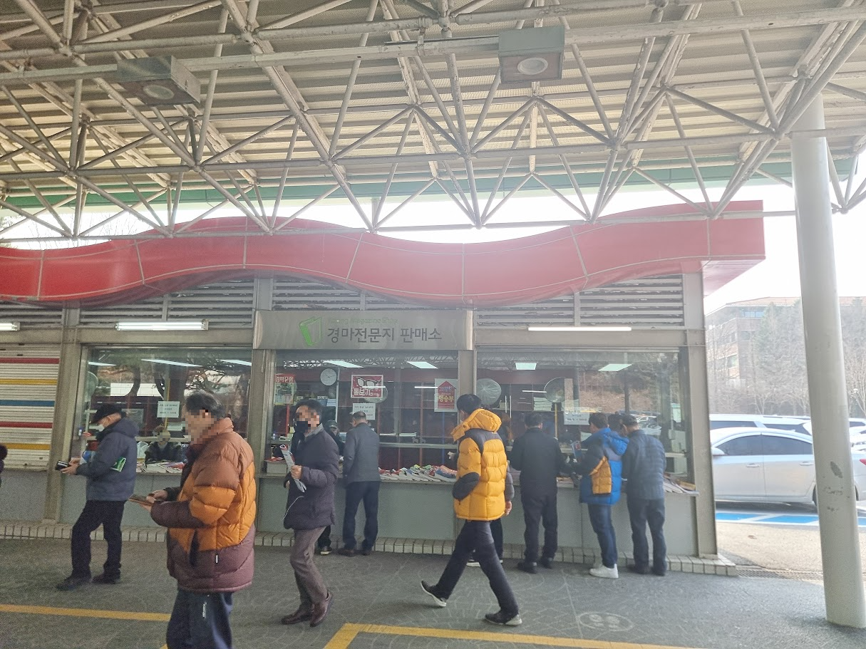 입구 쪽에서는 경마전문지를 판매하는 곳이 있습니다. 여기 자주 오시는 것 같은 분들은 다들 손에 책 하나씩 끼고 있더라고요.