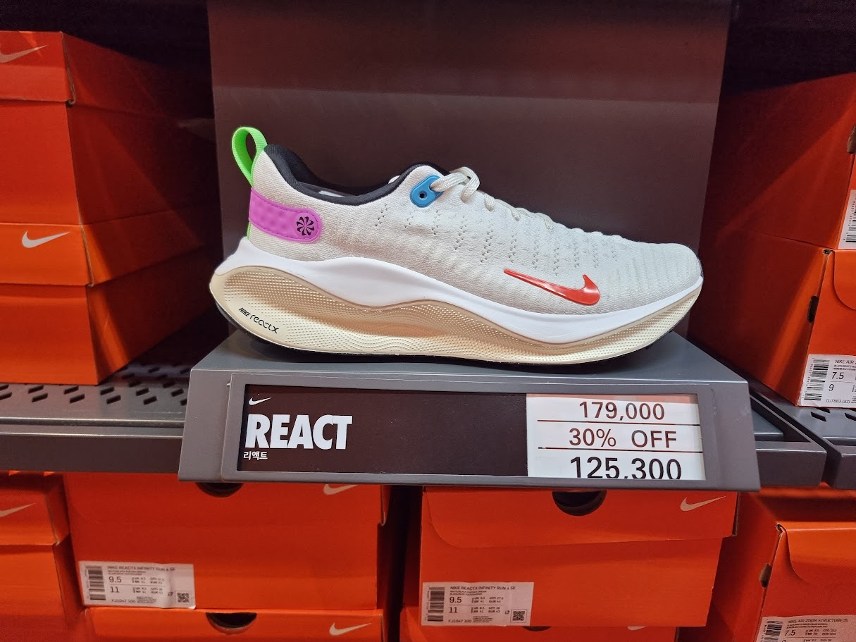 오랜만에 아울렛에 방문했는데 확실히 일반 매장보다는 저렴하게 느껴졌습니다. 적당히 운동용이나 런닝용으로 가성비 운동화를 찾는다면 역시 아울렛이 좋은 것 같네요.