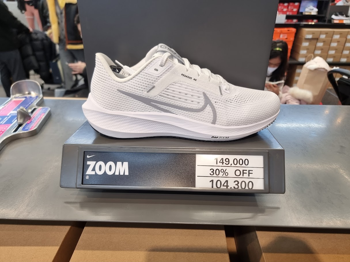 AIR ZOOM PEGASUS 40 은 30퍼센트 할인해서 104,300원입니다.