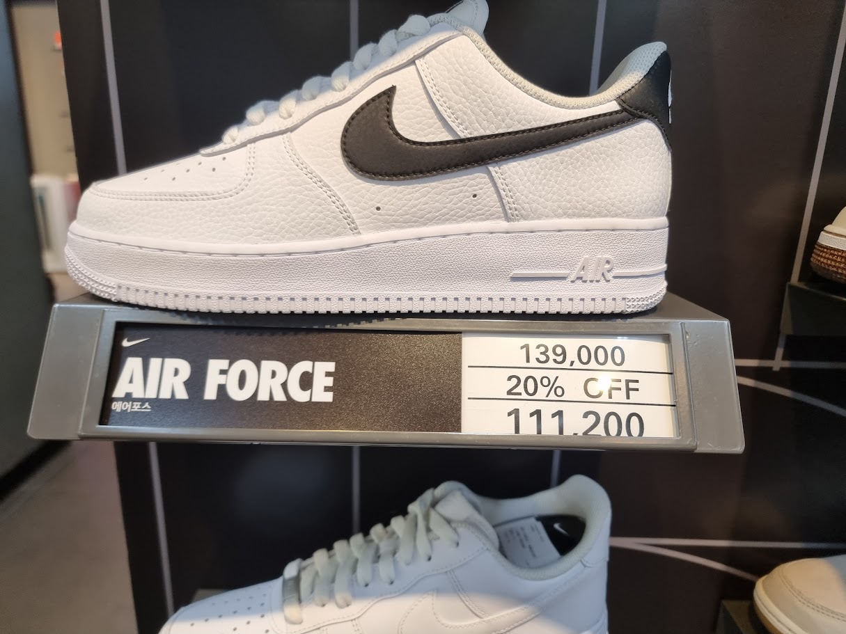 로고가 검은색인 에어포스는 20퍼센트 할인중입니다. 111,200원 입니다.