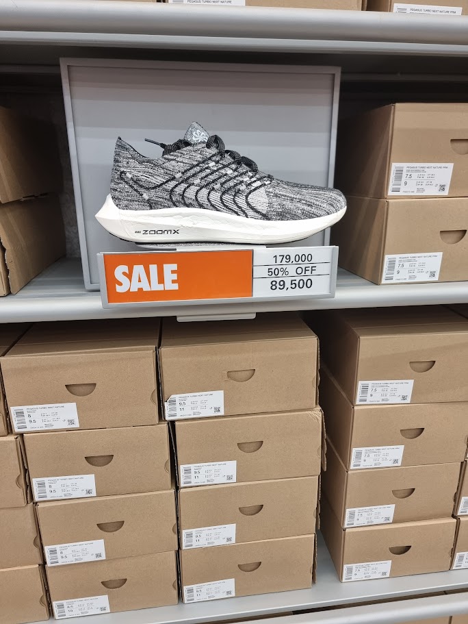 우선 시흥 신세계 프리미엄 아울렛의 나이키 신발 가격 정보입니다.