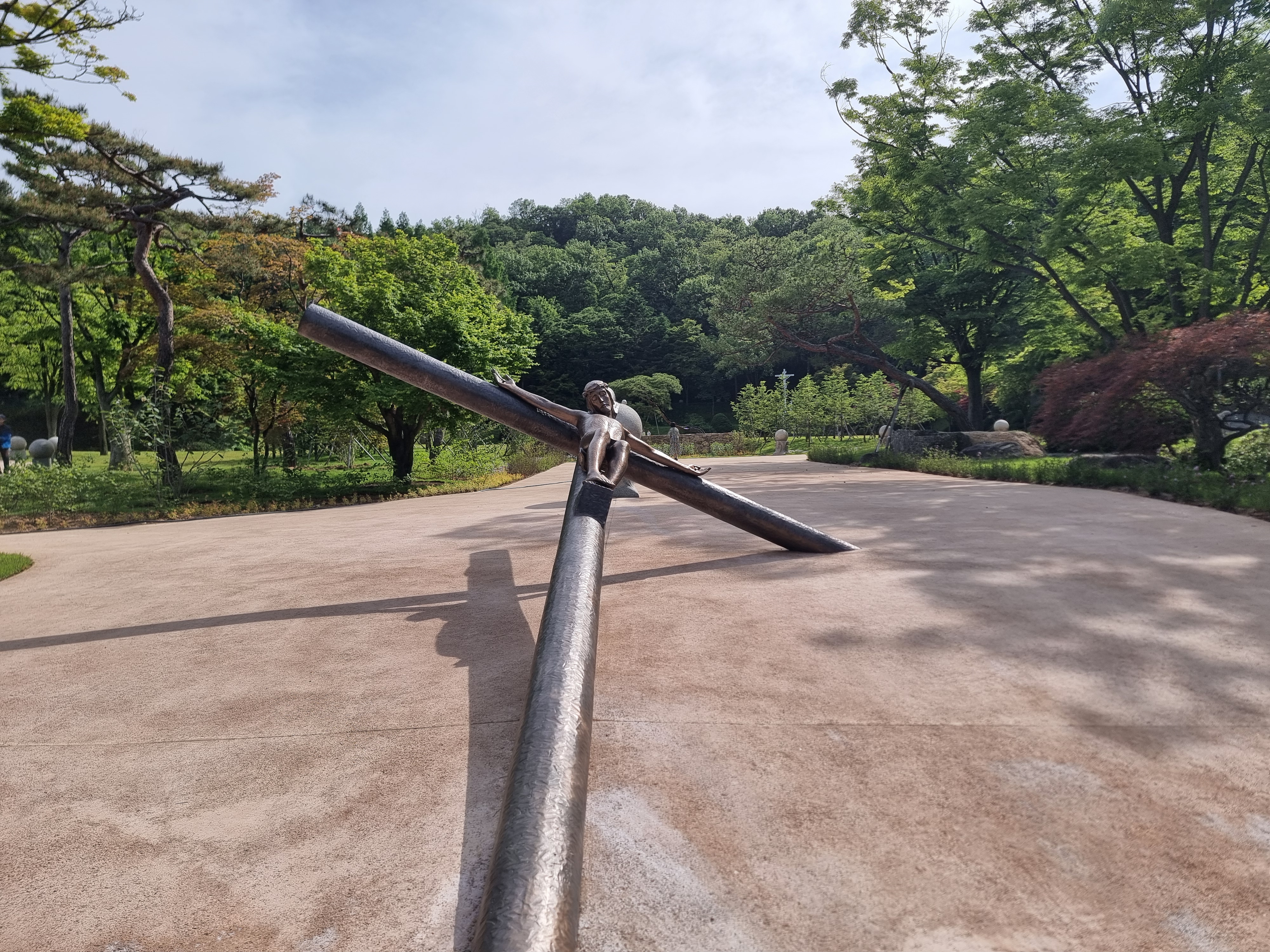 기억에 남는 조각중 하나인 바닥에 누워진 십자가에 걸린 예수상입니다.