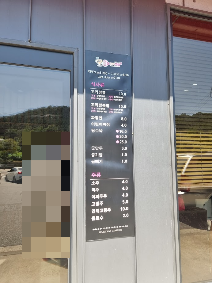 메뉴는 심플한 편입니다. 짬뽕메뉴로 꼬막짬뽕(10,000원), 꼬막짬뽕밥(10,000)이 있고, 짜장면, 탕수육, 군만두가 있습니다. 곱빼기 주문 시는 천 원 추가입니다.