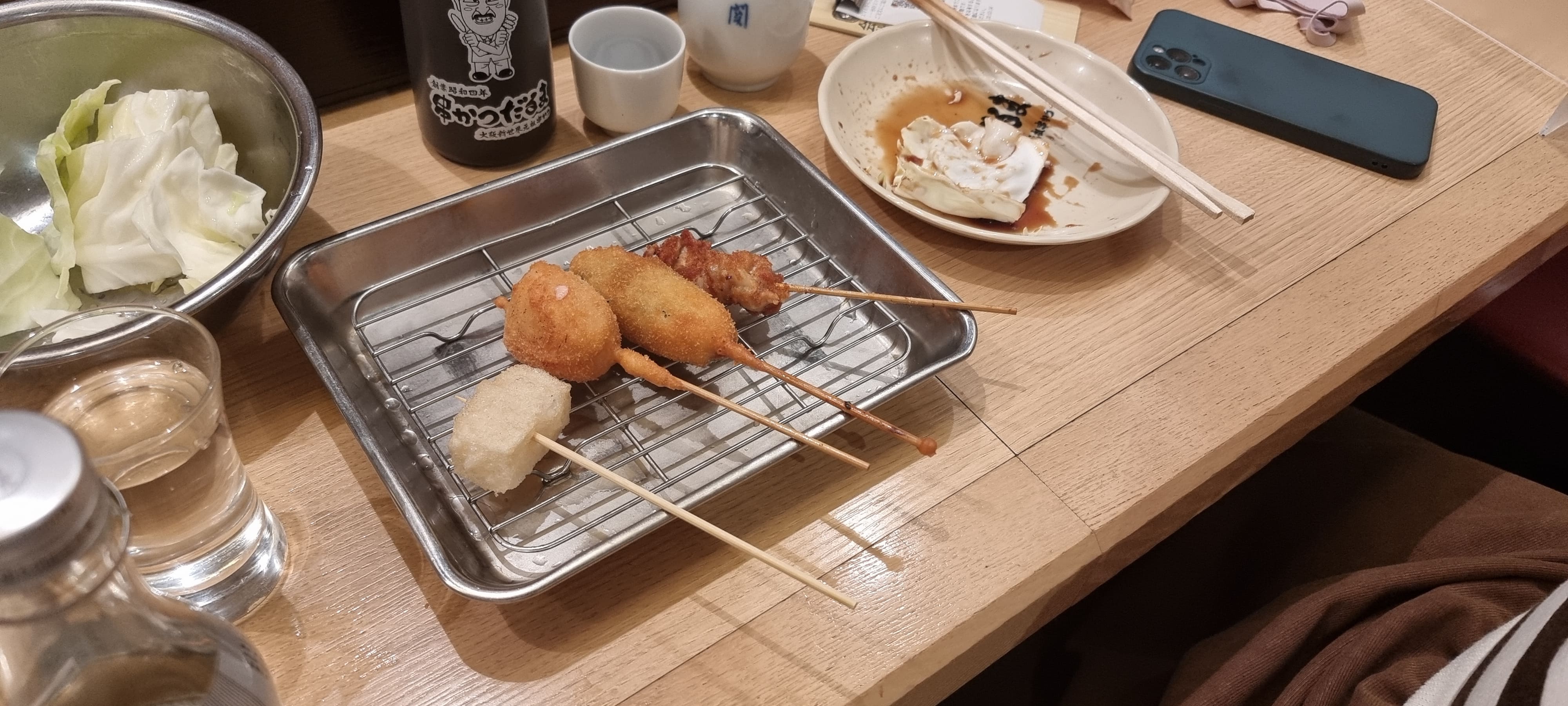 쿠시카츠다루마는 정말 싸고 맛있습니다. 일본 여행 중 2번을 방문했는데, 1번 방문 시 때마다 배가 부르고 술기운이 오를 정도로 많이 먹고 나왔는데 2명이서 5만 원 정도 나오는 것 같습니다. 여기가 생각나서 한국의 이자카야와 쿠시카츠 전문점들을 찾아봤는데 지금 한국이 비교도 안되게 비싸네요. 한국 물가가 너무 많이 오르고 일본의 엔화가치가 떨어지면서 지금이 일본 음식을 부담 없이 먹을 수 있는 시기인 것 같습니다.