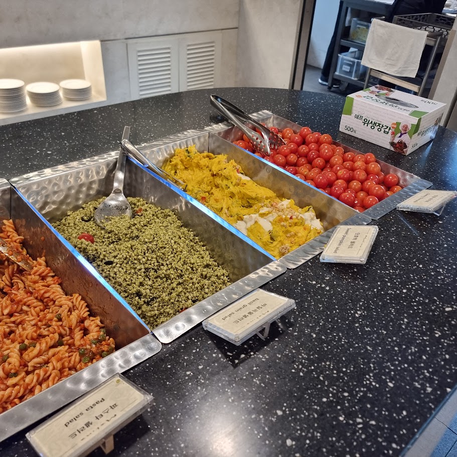 뷔페의 사이즈가 크지는 않아서 음식 종류가 많지는 않지만, 아주 알차고 버릴 것 없는 구성이었습니다. 소박하지만 취향 것 한식, 빵, 고기 등 다양한 장르의 음식을 먹을 수 있게 준비가 되어 있었어요. 다양한 음식을 맛봤는데 입맛에도 잘 맞고 너무 맛있었네요.