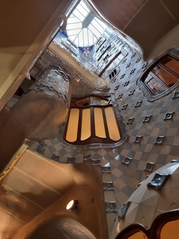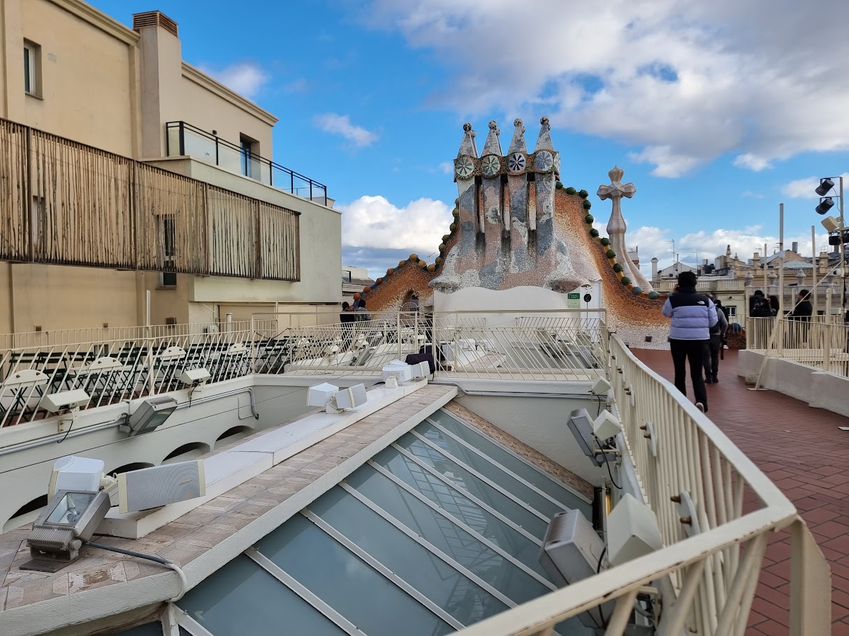 카사 바트요의 옥상은 꼭 올라가 봐야 할 곳 중 하나예요. 가우디 특유의 아기자기한 디자인과 환상적인 풍경이 어우러져 굉장히 인상적이었습니다. 특히 동화 속 궁전에서 찍은 듯한 기념사진은 소중한 추억으로 남을 것 같아요.
