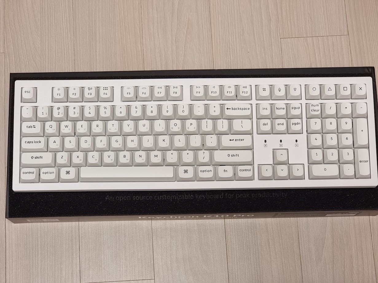 이번에 데스크 셋업을 화이트톤으로 바꾸면서, 화이트 컬러의 기계식 키보드들을 비교 중에 키크론 키보드를 구매하게 되었습니다. 텐키리스키보드가 디자인이 너무 예쁘게 나온 게 많아서 많은 고민을 했지만, 아무래도 액셀 사용 비용이 높은 업무 특성상, 풀배열로 결정했고, 풀배열 기계식 화이트 중 디자인이 차분하고 깔끔해 보이고, 신제품 출시 예정이었던 키크론 K10 PRO 화이트 상품을 구매하였습니다
