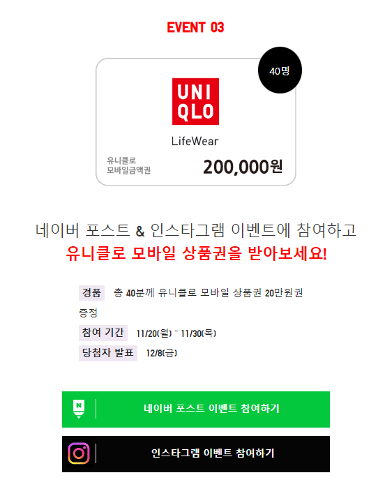 네이버 포스트와 인스타그램 이벤트 참여 시 상품권을 준다고 합니다.